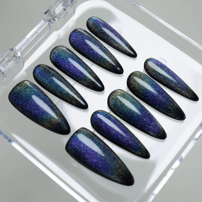 I recommend using Adhesive Tabs because you can reuse all of the nails multiple times and protect your nails from scratches. Follow the instructions provided with the nail set. And keep them stored in the provided hard case between occasions.